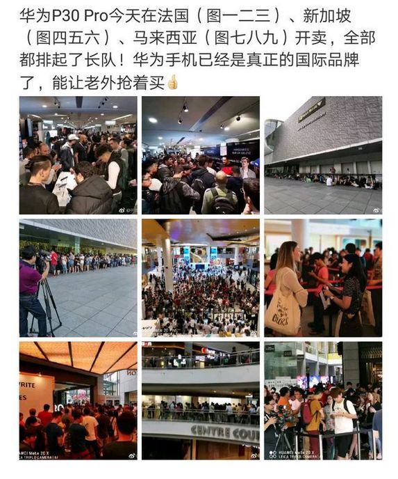 而今天,伴随华为P30的发布,我们看到了英国、法国、德国、新加坡、泰国、马来西亚等全球多地消费者排队抢购华为的盛况。